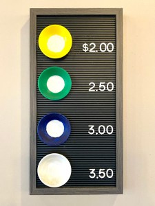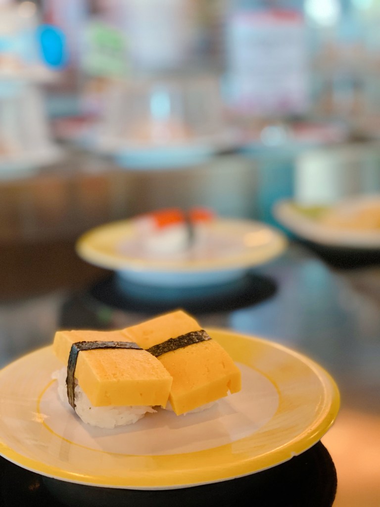 How does it work? You sit by the revolving counter and grab what you want. At the end, they’ll count up your plates: Yellow = $2, Green = $2.50, Blue = $3; and White = $3.50. Be prepared to stack an embarrassing number of plates here because it’s a fun way to try new rolls. It’s hard to resist the opportunity as they roll right by you.